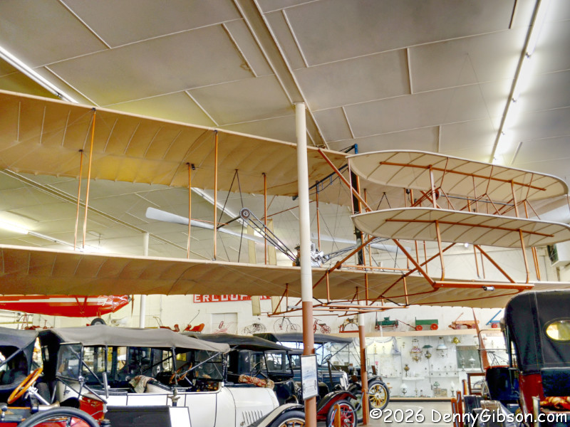 I do not remember the flying machine, and was rather surprised when I saw it and noted that it looked like one of the earliest Wright Brothers' Flyers. It is an exact replica built in 1962. |
