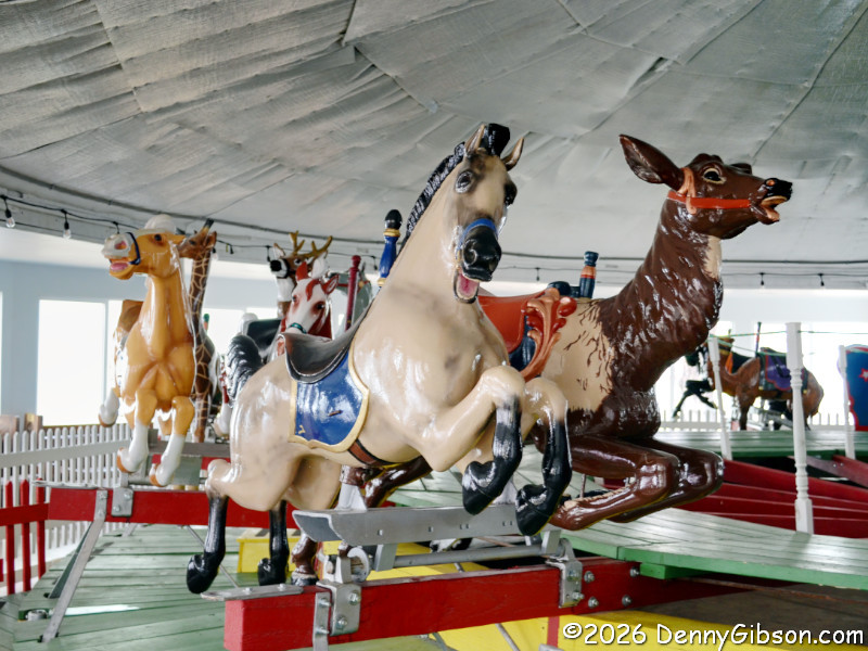 Although no longer operated by steam, the 1879 carousel has been restored,