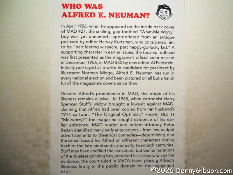 What, Me Worry? The Art and Humor of MAD Magazine is here through March 1. It’s even free on Thursday evenings between 5:00 and 8:00..