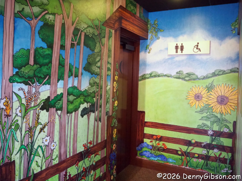 I knew they had to exist somewhere, but commodes of the past aren’t displayed all that often. Child-sized ones seem particularly rare. Just across the hall, the actual available-for-use restrooms have a rustic yet inviting appearance.
