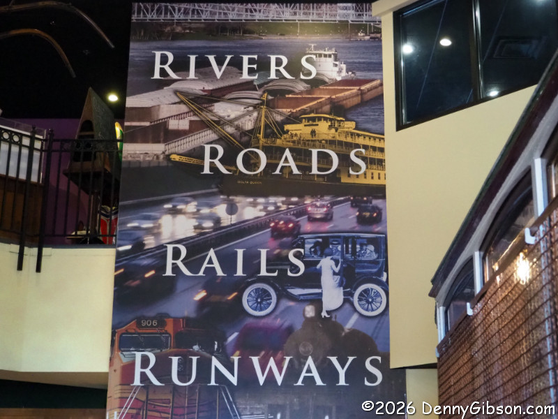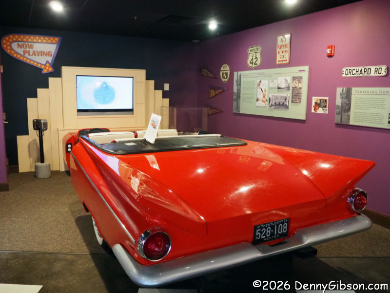 The museum has a nice display on the development of roads in the area. Yes, that’s a Dixie Highway map in the lower part of the information panel. There is a Buick to watch movies (actually old TV commercials) in, and a Studebaker (once the “World’s Largest Vehicle Manufacturer”) hanging from the ceiling.