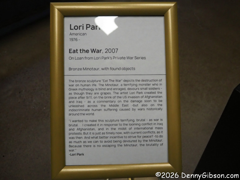 The Anti-War Gallery was the first room I entered off the lobby. Most of the artwork is from Beryl Bernay and J. Kadar Cannon. The sculpture in the middle of the room is by Lori Park.
