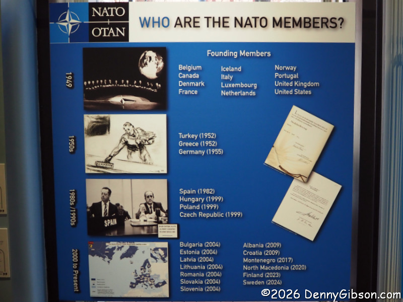 An equal amount of space is devoted to the North Atlantic Treaty Organization. Last year’s 75th anniversary is noted, along with many of its peachkeeping successes during those years.