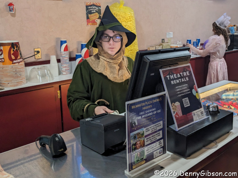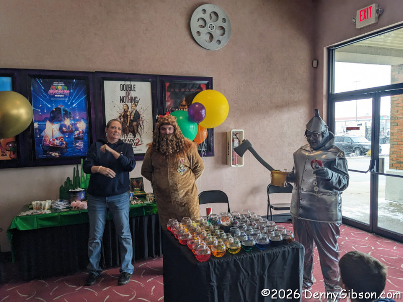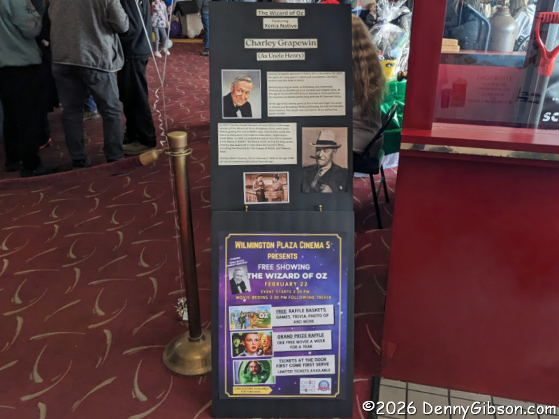 Ohio Goes to the Movies sponsors free showings of movies with Ohio connections at locations spread throughout the state. One of The Wizard of Oz showings was in Wilmington on Sunday. That’s where my daughter lives, and she and my grandson attended too. Not every seat was filled, but the event’s popularity prompted a second showing. Megan and Wes got there early and secured tickets for the first showing. Good job.