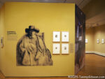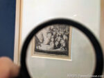 There is, as advertised, even less color in the works in this exhibit. It is made up of monochrome prints from etchings. The etchings are often rather small, and they can be quite detailed. Loaner magnifying glasses are available near the entrance to help make that detail visible. Also near the entrance is a timeline that places Rembrandt’s life (1606-1669) within the context of world events and other artists. The man had quite the impact. Bright colors, it seems, aren’t really necessary.