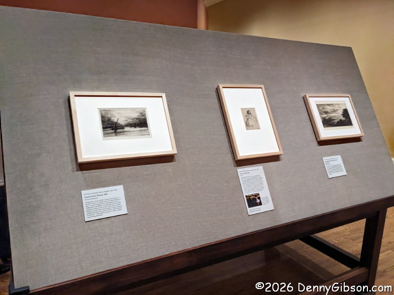 In addition to the 49 Rembrandt etchings, the exhibit includes nine etchings he inspired others to create. One of those inspired was James Whistler, who, as we see here, used his niece as a model in addition to his more famous mother.