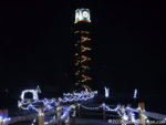 With the lights still up, differences in the screen were obvious. The old screen was more porous and the speakers behind it could be seen when nothing was being projected on it; A little staring revealed the seams where panels overlapped. The new screen is a little whiter and less porous; There is no overlapping of panels. Some darkish lines, which I believe are bits of the backing frame, can be detected if you look hard enough. There are still speakers behind the giant screen but now they can only be heard and not seen. They say that the new sound system sounds better and I believe them. It certainly sounds wonderful but so did the old one and a side-by-side comparison just isn’t possible.