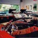 There’s really a lot more than cars here. Guys who put together car collections like this seem to naturally pick up lots of other things car-related, as well as some stuff that’s not really car-related at all. The cigarette vending machine served up a pack of smokes when a dime and a nickel were inserted simultaneously. Out of view are climate-controlled spaces similar to those seen here that are rented by individuals for car storage. And even the public space isn’t exactly all museum. A large section called The Hub can be rented for private events and has been the site of birthday and graduation parties, club meetings, and at least one wedding. Of course, parts of it do look pretty much like a museum.