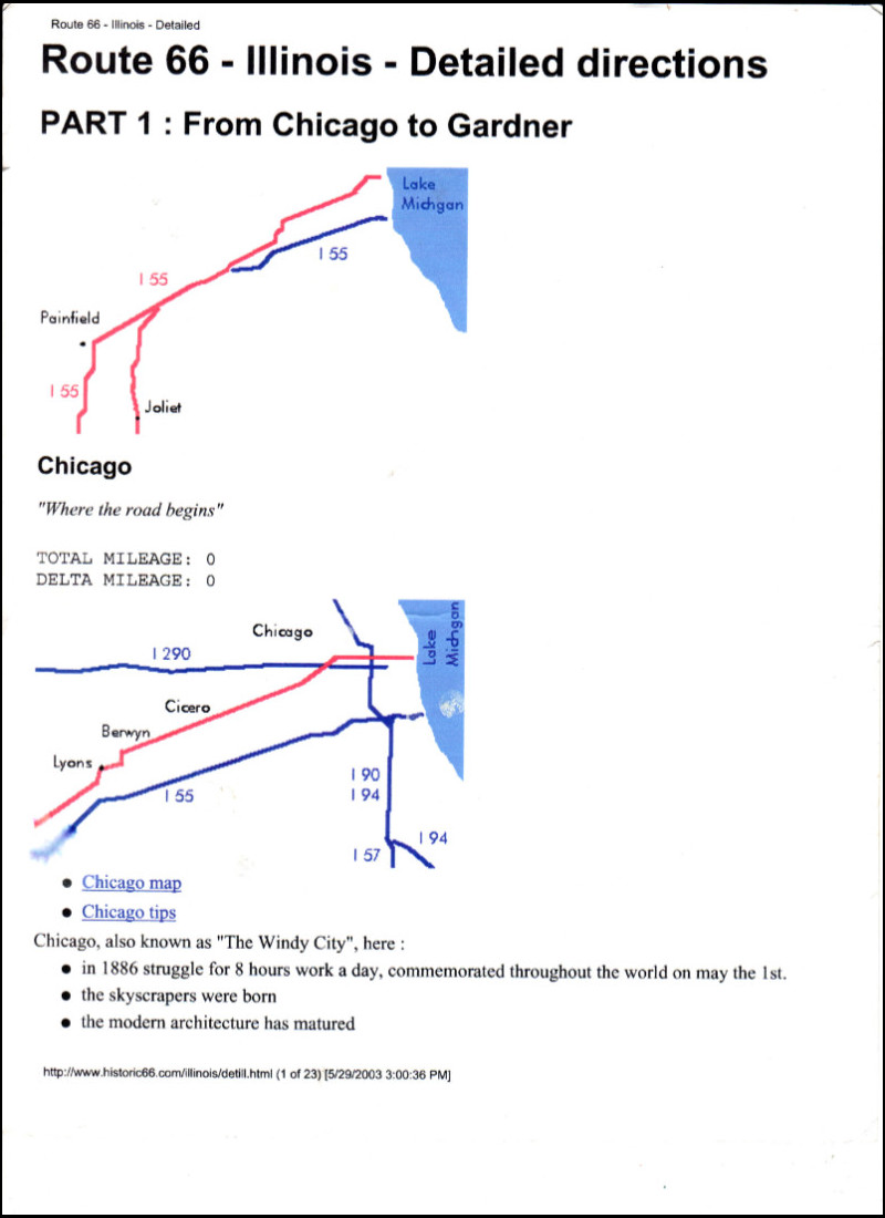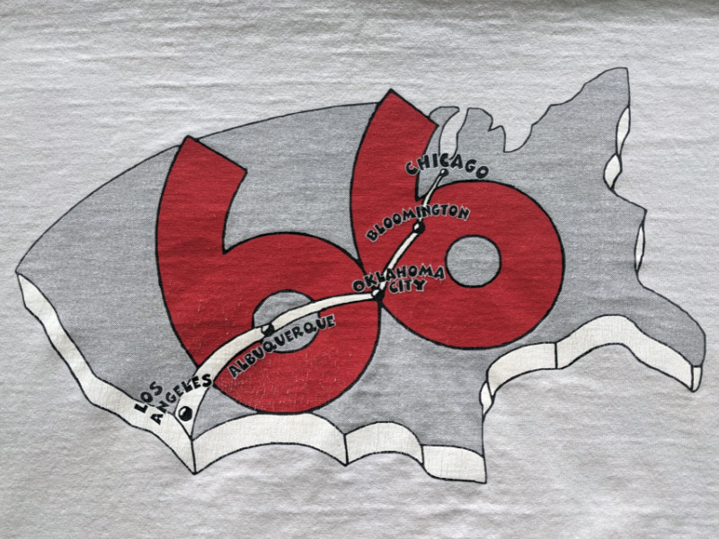 There has always been a GPS in my car, starting with the very first of my documented road trips. The earliest ones I used showed me my position on a map and the straight-line distance to cities and other places. They did not offer routing. I actually doubt that routing was even possible before the government dropped “selective availability”, which limited the accuracy of civilian receivers, in 2000. I acquired a unit capable of routing in 2006 and started plotting downloadable routes for my trips. This included some partial Route 66 outings using directions in a first-edition EZ66 Guide, which I’d bought from Jerry in 2005. For my third full-length trip in 2012, I used a store-bought route.