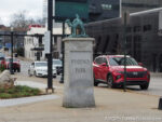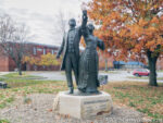 I made my way back to the Zero Milestone, crossed yesterday’s path, and started north on the eastern Cincinnati-Lexington Dixie Highway alignment. The first section is now one-way northbound, so it’s likely that the only time I have driven it was on that 2022 round trip. The statue of Lewis and Harriet Hayden was not here then. The statue of the escaped slaves who became quite active in the Underground Railroad was unveiled on Juneteenth of this year. It is phase one of Lexington’s Freedom Train project. The Paris Pike Scenic Byway begins at the edge of town after the road has become two-way.