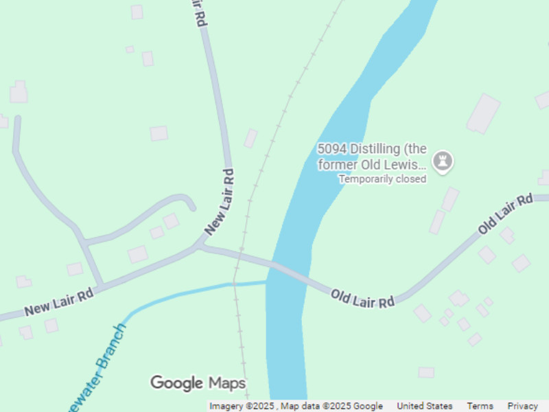 This is the Paris, complete with Eiffel Tower, the byway leads to. Beyond it, there are several bypassed sections of old road that probably look quite a bit like they did in Dixie Highway days. One passes through Blair and past the Old Lewis Hunter distillery. Potential customers are advised that Google Maps shows this as temporarily closed.