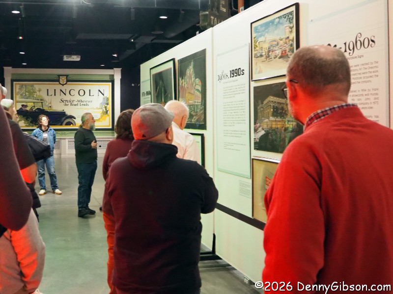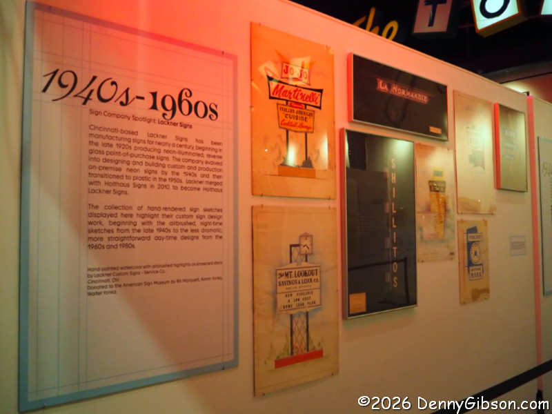 Among the things Tod pointed out as he led us through the exhibit was the start of using black backgrounds to better illustrate the impact of lighted signs and the increasing use of backgrounds and buildings rather than just the sign by itself.
