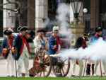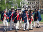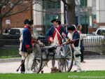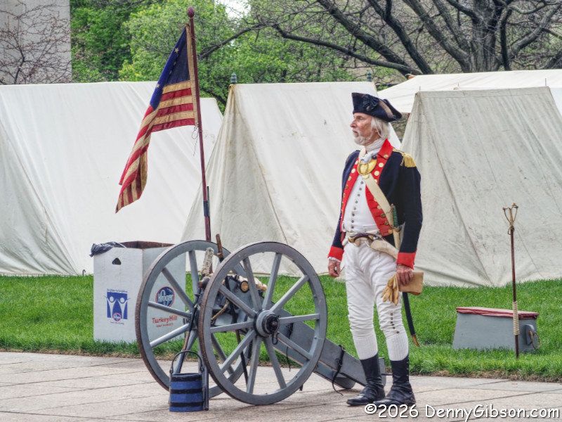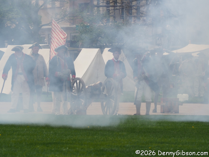 While I was listening to the fifers & drummers, watching the dancers, and sampling the samples, the soldiers had been relaxing and answering questions from the curious. Now they lined up and began marching back to the open lawn. It was about to get noisy.