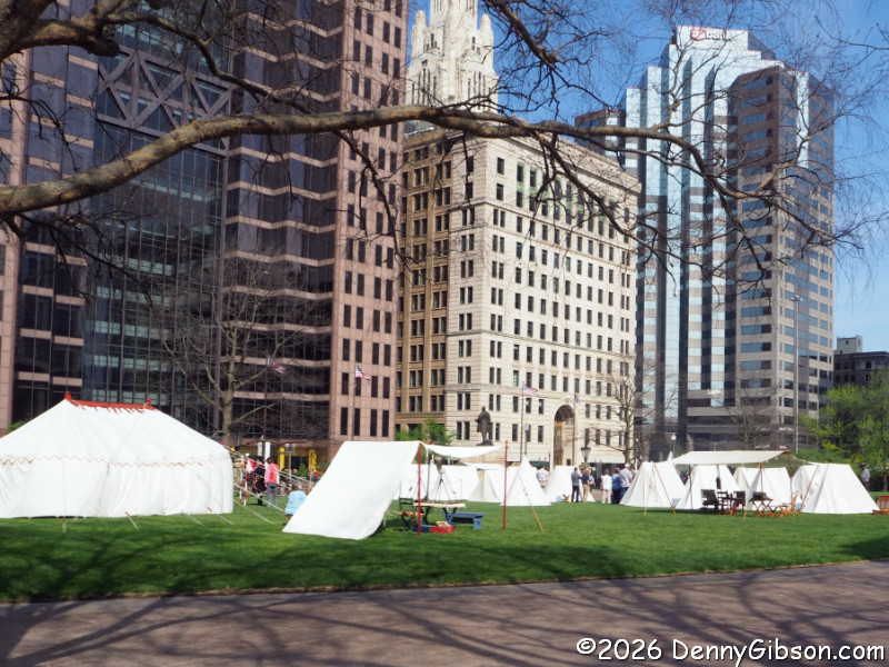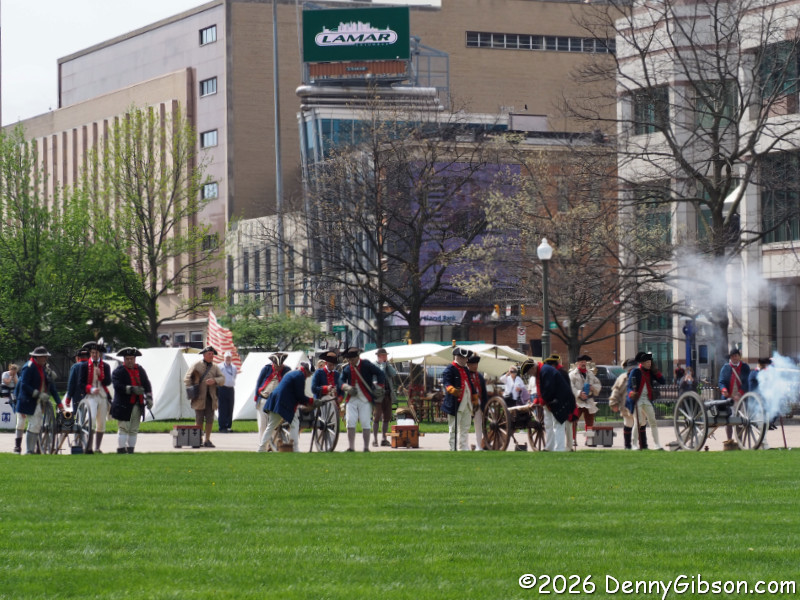I have already taken advantage of two Ohio Goes to the Movies events, and I doubt those will be the last. But Ohio is doing a lot more than showing movies to mark the semiquincentennial of the signing of the United States Declaration of Independence. One of the many events organized by America 250 – Ohio was something called American Revolution in the Ohio Country, which took place Wednesday on the grounds of the state capitol in Columbus. Ohio was not a charter member of the USA, but we did join up fairly early on. Plus Fort Laurens near Bolivar, OH, was built and occupied during the American Revolution, and the Battle of Picawey, near Springfield, OH, is considered part of that war. Wednesday’s encampment did not attempt to recreate any specific event, but to offer a glimpse at life in the 1770s.