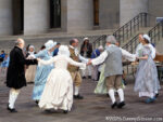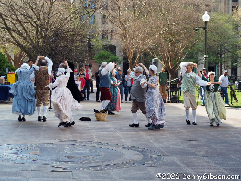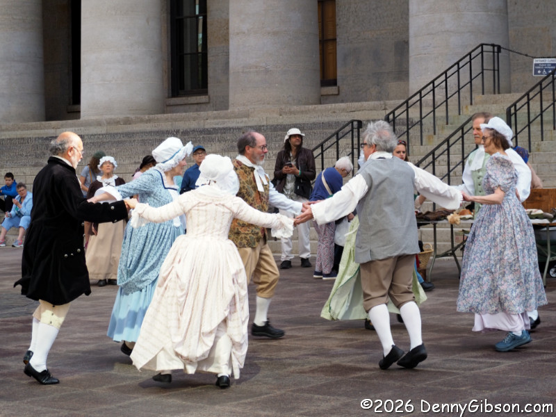 More music followed. This music was recorded and played through speakers so these energetic folks could dance to it. The second picture is of a quadrille (4 couples, 8 people), which Americans in the next century turned into square dancing with cowboy boots and no French accent.