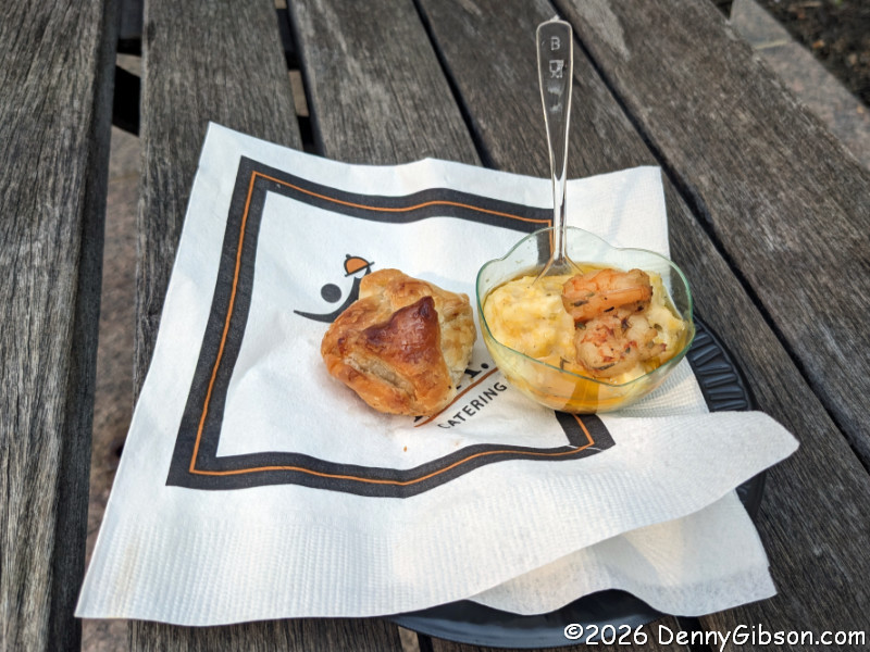 Having read that there would be “samples of food from the revolutionary time”, I anticipated things unfamiliar and bizarre, but the most bizarre thing about the offerings was that stuff that I thought quite modern was being served in the 18th century. When I mentioned my surprise, the lady tending to the “Mini Beef in Crust”, which I picked as one of my two samples, told me that “Swedish Ham Meatballs” had been served at Mount Vernon, and that “Shrimp & Grits”, my other sample, had been popular in the Carolinas back in the day.