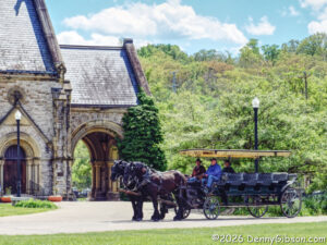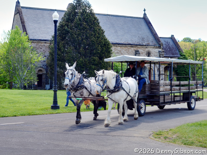 I do, however, regret missing out on previous events for one reason. In the past, I have enjoyed extended walks around Spring Grove Cemetery, and would certainly have enjoyed the guided walking tour available today. But long walks have become problematic for me over the last year or so, and I was happy to take advantage of the horse-drawn carriage rides, which, like the walking tours, were free.