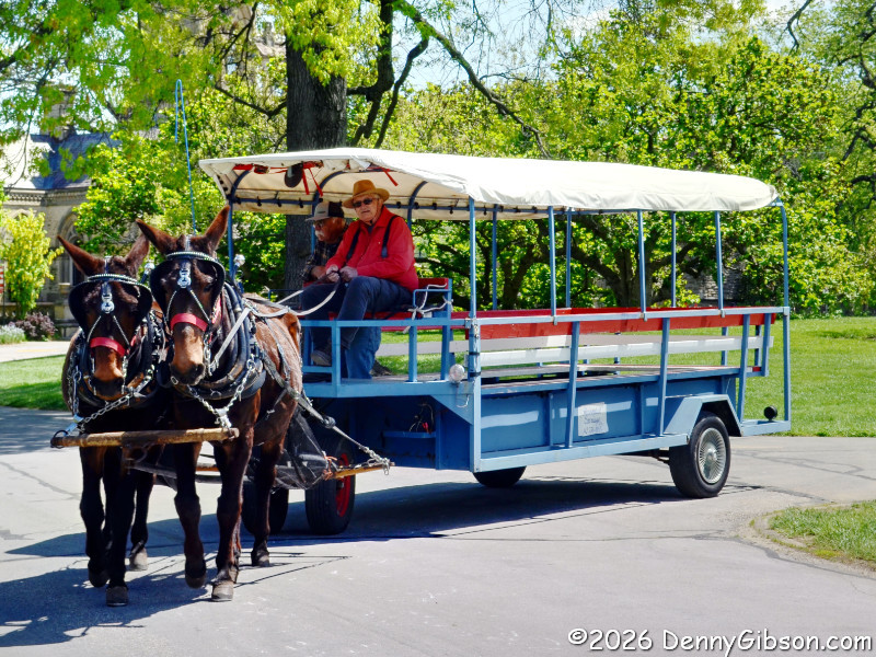 It was nearing 1:00 when I arrived. This was probably near the busiest part of the day, and the line for carriage rides was rather long. My wait was a bit more than an hour, but the weather and surroundings were very pleasant. Neither I nor the others in line were much bothered by the wait. There was a group of five, including an extremely young baby, immediately in front of me. The first of the group had boarded a carriage when it became apparent they could not all be accommodated. When those on board turned to rejoin those on the ground, a couple already seated stepped off — with a smile — so mom and the others didn’t have to wait any longer.