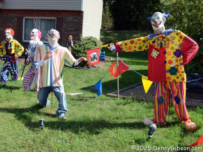 Not everybody decorates for Halloween with store-bought skeletons and inflatable witches. Some people, like this guy in Delhi Township that I just learned of, do it with personal creativity. For the last ten years, Shaun Reynolds has filled his front yard with unique creations based on different themes. This year, it’s clowns.