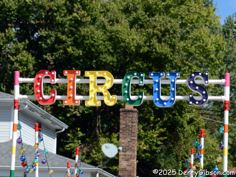 One of the most fantastic events I’ve ever attended was presented by the museum in June of 2022. The Signmaker’s Circus was a truly outlandish celebration of the tenth anniversary of the move to Camp Washington. Things were really falling into place to allow expansion into the other half of the building. This party took advantage of that situation and was actually sort of a step toward the expansion. The storage area was cleared, and just about every sign in the museum’s possession was hung and illuminated. An entire troupe of circus performers moved into the space so that the image at left is what we saw when the curtains opened.