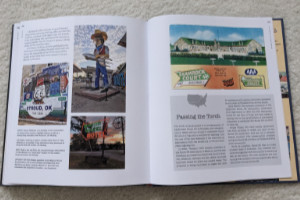 It’s probably not all that surprising that Route 66: The First 100 Years overflows its twelve numbered chapters. It starts with a full page of Acknowledgments, followed by a Forward written by Route 66’s storytelling king, Michael Wallis. Jim and Shellee follow that with a Preamble, then include an Epilogue, Road Facts, and a few other sections after Chapter 12. One of these sections, titled “Happy Trails”, is a collection of roadside photos taken over the Mother Road’s first 100 years. Many are of unidentified travelers, but there are some real celebrities in the mix. There’s Jack Rittenhouse standing beside a California U.S. 66 sign, Lillian Redman by an Arizona 66 sign, and Cynthia Troup gazing at a U.S. 66 sign in New Mexico. As I said earlier, 100 years and 2400+ miles cover a lot of space and time. Jim and Shellee have done an impressive job of capturing the big picture and quite a few of the small picture details, too.