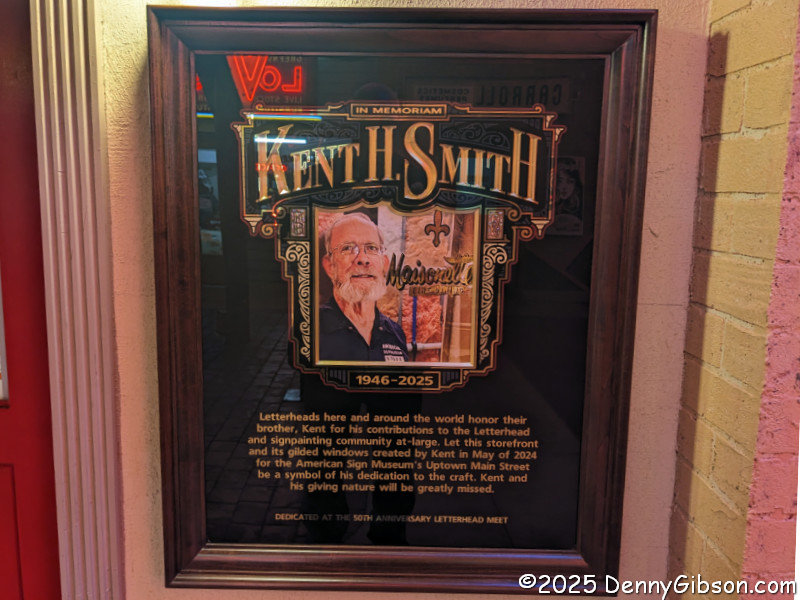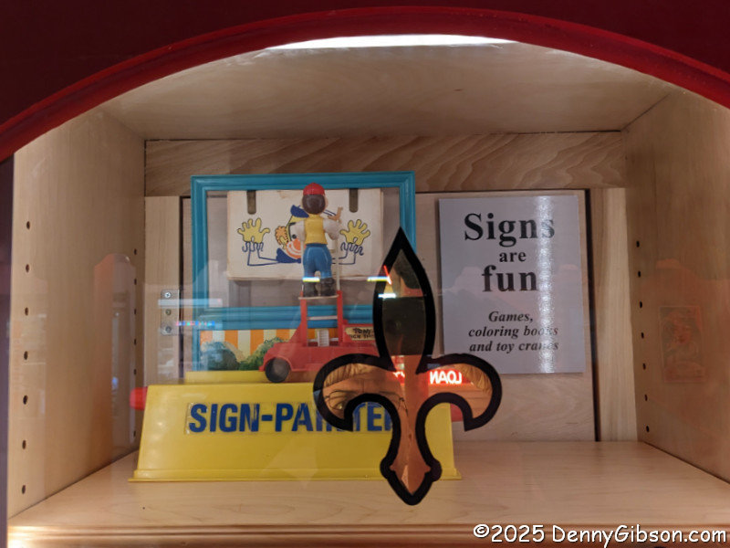 I don’t believe there was ever a time when all of the Sign Museum’s holdings were stored in one place, but for a while, a lot of them were stored in the unoccupied half of the building. Most was moved out for the circus and for the expansion. I had been privileged to peek inside that attached attic a couple of times over the years, and in May 2023, got A Glimpse of ASM’s Attic (detached version) with a special “Coffee with Tod” gathering. The Sign-Painter that opened that post now has a home in the museum, along with many other items seen that day.
