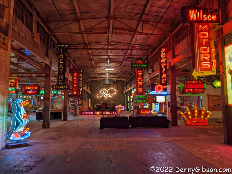 Neonworks at American Sign MuseumJust about a month later, Don Hatch, from Illinois, was in town and anxious to see the expanded museum. Don had been part of the “Madonnas & Signs” group that visited the original location back in ’09. We both enjoyed our first neon tube lighting demonstration in the Neon Works shop attached to the museum. Don’s July 2012 visit is here.