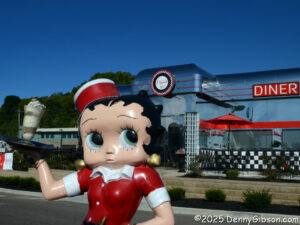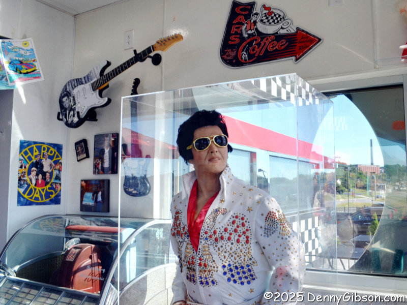 The mezzanine also provides a nice overlook of the diner and US-50 passing by. I’ve not suddenly become a fan of brand-new chrome-plated diners, and I’ll probably still cringe a little when I next find myself knee deep in Elvis & Marilyn paraphernalia, but Steve Caudill… I mean, Steve TE and his wife, Barbara, have created something pretty cool in Lawrenceburg, Indiana. The diner isn’t trying to pretend it’s something it’s not, and the museum’s impressive collection is very nicely presented. A miniature golf course is to be added to the complex in the near future. If the folks running that are as cheerful and competent as everyone I’ve met on my two visits, I might be tempted to pick up a putter for the first time in a few decades. Maybe not, though. I’m more likely to sip a milkshake while looking at cool cars and watching someone else count strokes.