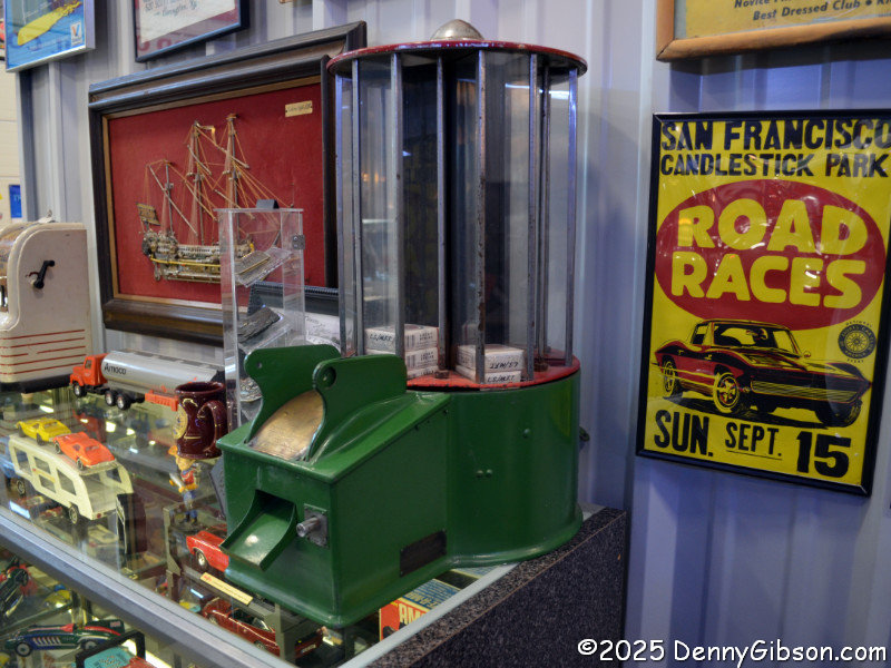 There’s really a lot more than cars here. Guys who put together car collections like this seem to naturally pick up lots of other things car-related, as well as some stuff that’s not really car-related at all. The cigarette vending machine served up a pack of smokes when a dime and a nickel were inserted simultaneously. Out of view are climate-controlled spaces similar to those seen here that are rented by individuals for car storage. And even the public space isn’t exactly all museum. A large section called The Hub can be rented for private events and has been the site of birthday and graduation parties, club meetings, and at least one wedding. Of course, parts of it do look pretty much like a museum.
