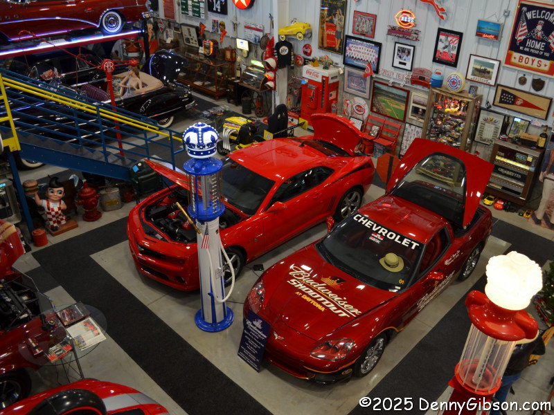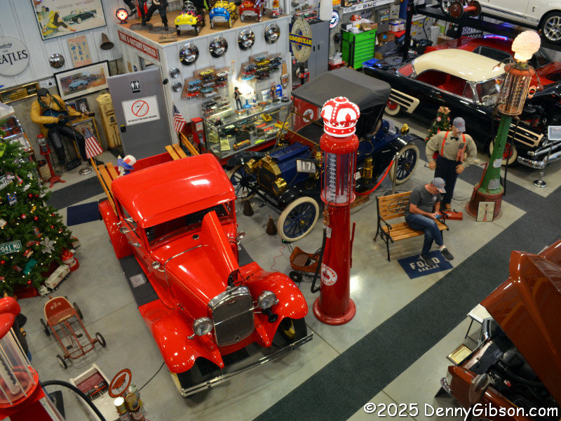 For a different view of some of the cars and maybe some fun and games, climb the stairs to the mezzanine. I did and snapped pictures that include the Hit King Camaro, the Brass Era T, and Steve TO waiting for me to come back down. He basically gave me a fully guided tour and answered every question I had, including some called down from the mezzanine.