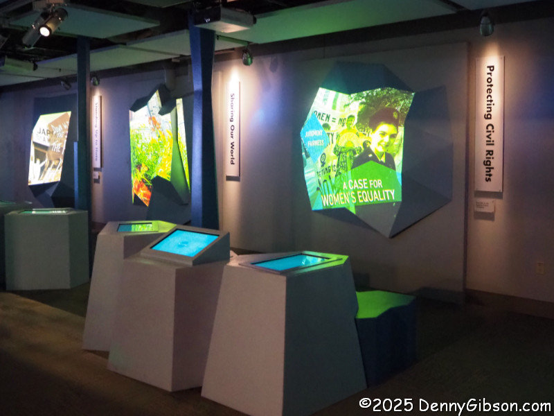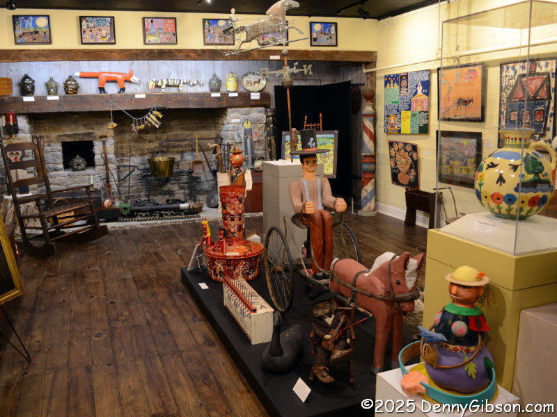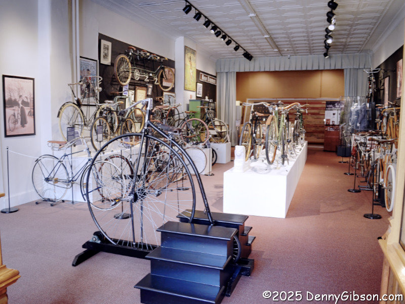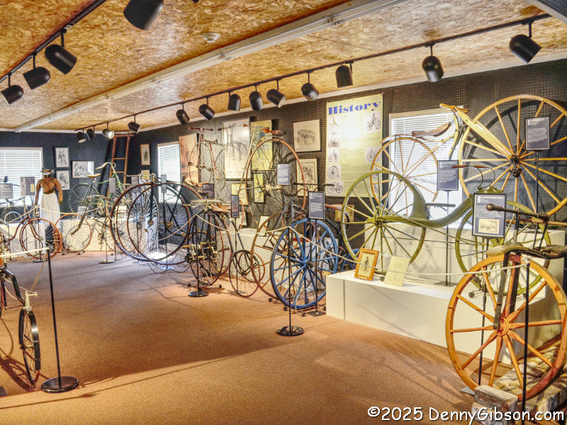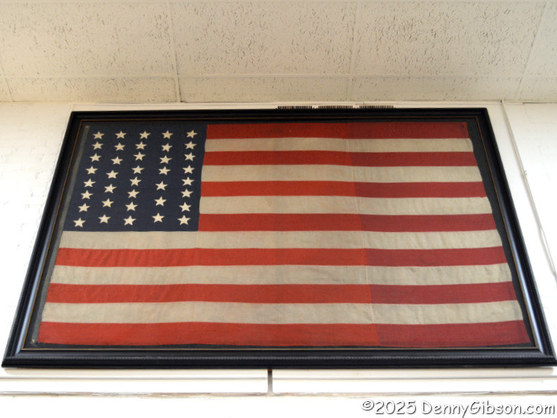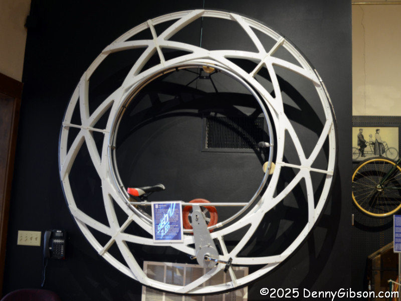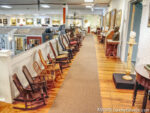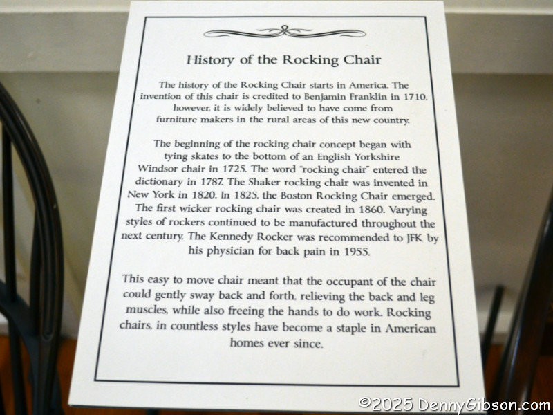 The building housing the museum was originally built as a gymnasium with a large space where basketball games and other athletic activities took place. Basketball hoops were once mounted where the clock and the 1876 38-star flag are now. The rocking chairs are among Hope’s favorites, and she commented that she thought this collection was one of the world’s largest when we passed it. According to this placard, rocking originated in America. I suppose it’s only natural that we eventually combined it with rolling.