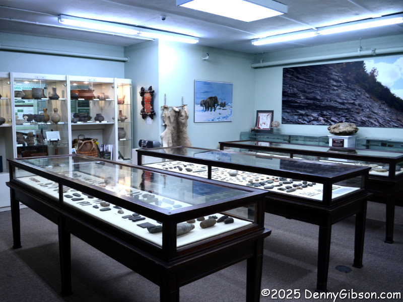 The adjacent room contained an impressive collection of locally found arrow and spear points, axe heads, and other prehistoric tools. It was here that Hope, the lady I met in the Armstrong Conference Center, caught up with me and told me that this was her favorite room in the building. She pointed out some items in the room and even demonstrated, short of a final launch, the workings of an atlatl.