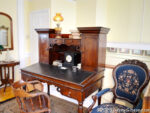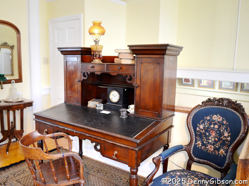 I was then treated to a guided “highlights tour” of the rest of the museum. As we moved upward through the exhibits, Hope called various items to my attention and shared some information about each one. This bed was a product of the Cincinnati Art-Carved Furniture Movement of the late 19th century. This was a rather major movement powered primarily by women, and something I previously knew absolutely nothing about. I guess this desk was not among Hope’s favorites, but it was among mine. Thomas Corwin was a Lebanon lawyer who had great success in politics. He served in both houses of the U.S. Congress and as the U.S. Secretary of the Treasury, along with several positions within Ohio, including governor. This desk is from his time as Ohio’s 15th governor (1840-1842).