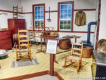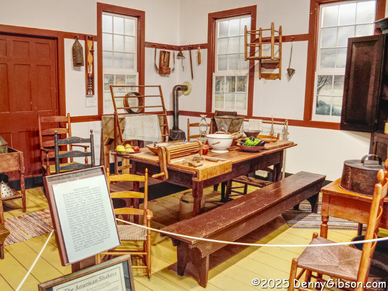 Following the “highlight tour”, I returned to Shaker Gallery on the top floor. In the early 19th century, a large colony of this communal religious group stood in nearby Turtlecreek Township, and the museum has many articles from there. Pictured are a laundry room, a textile room, and a kitchen. Curiously, one of the few items accompanied by instructions is one where they are probably not needed.