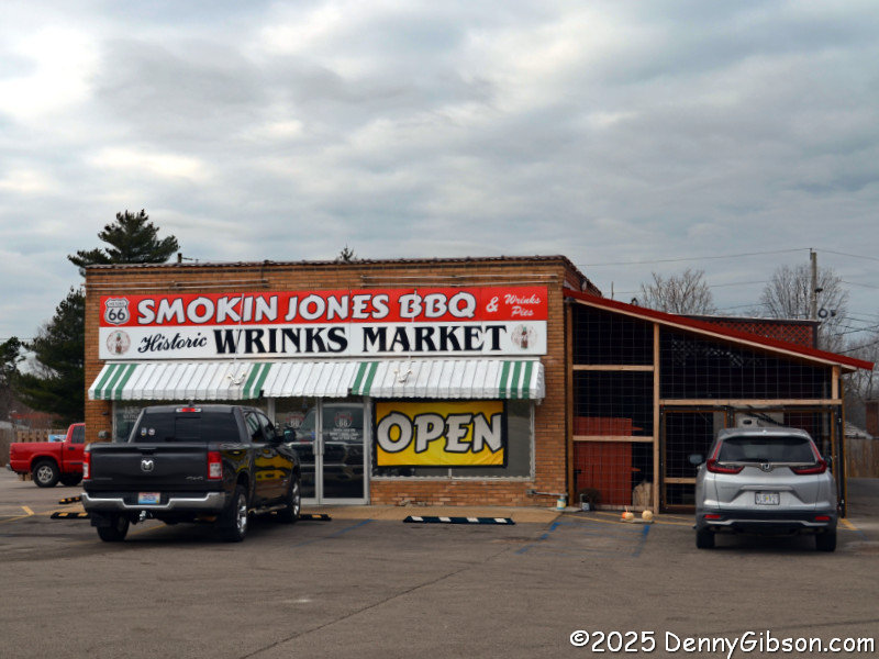 In Lebanon, MO, I paused briefly at the Munger Moss but it seems its days as a much loved working motel are over. At least Bob and Ramona still have their names on a resting spot. Down the street, Glen Wrinkle's name remains on his old store where a BBQ restaurant now operates.