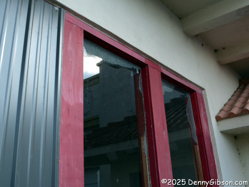 out and now lies scattered across the floor inside. At least the big pane