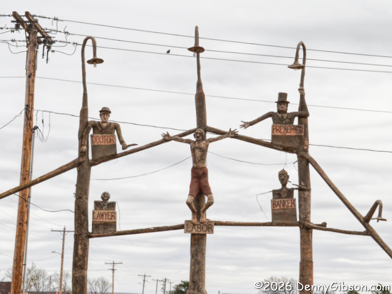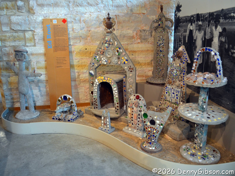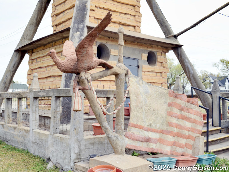 The story goes that Dinsmoor's wife complained that she rarely saw him because he was always outside working, so he created the waving version of himself that she could see from the kitchen window. |