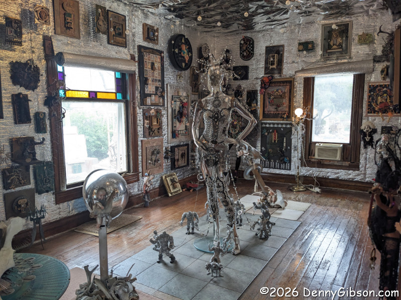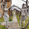 Outside, the property is filled with sculptures that were created in