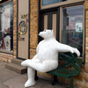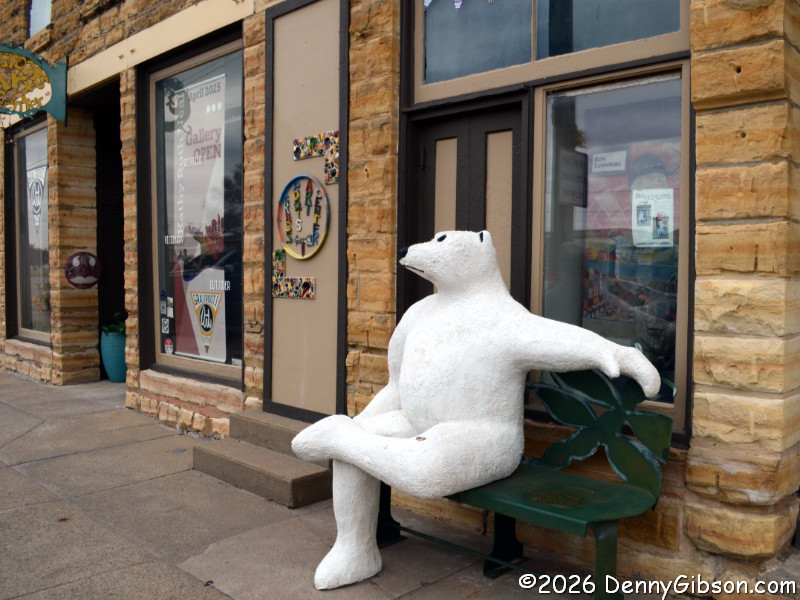Limestone. A bit farther up the street, a relaxing polar bear has become a