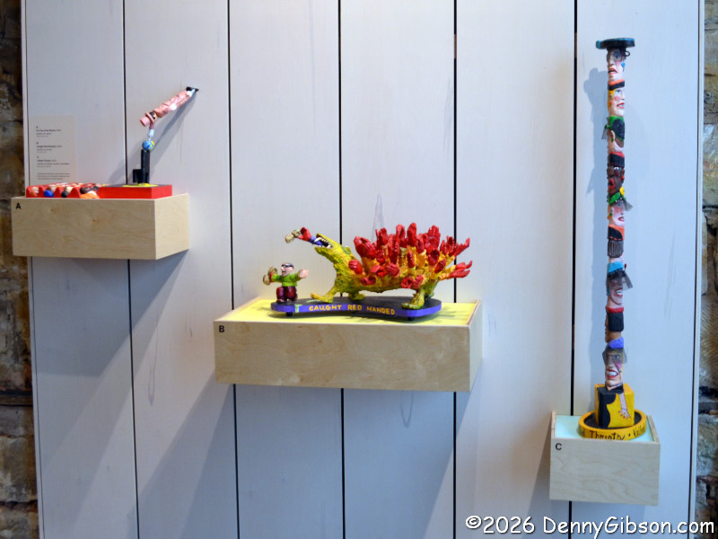 the wood carvings. The delightful pull-tab creations are the work of