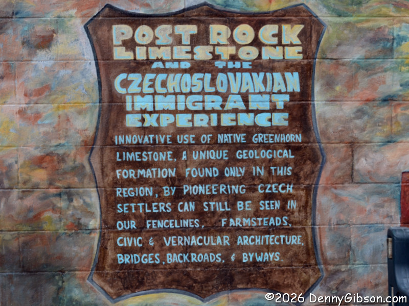 The absence of stone posts that had caused me to almost turn around did not last long. After my pause at the lake, I would see thousands of the posts and would eventually see all sorts of things, including complete buildings, made of the stone. In Lucas, I would learn that the stone was known as greenhorn limestone, and, as evidenced by all those fence posts, is relatively easy to split. |