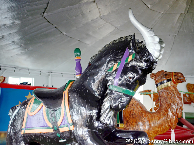 Although no longer operated by steam, the 1879 carousel has been restored,