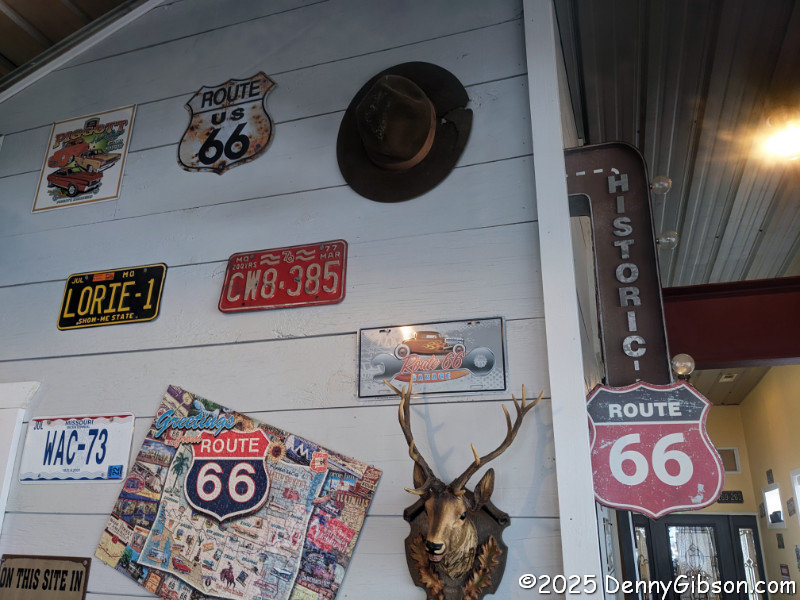 It was kind of refreshing seeing Route 66 signs in a restaurant that was actually on Route 66. One was a bit unusual, but still looked familiar. I eventually recalled it being in the background of a photo of friends at a restaurant in Virginia. Another sign puzzled me so I asked my waitress about it, but she didn't know. An online search revealed that the logo identifies the National Wild Turkey Federation. It's use on a US Highway shield just might be a one time thing.