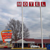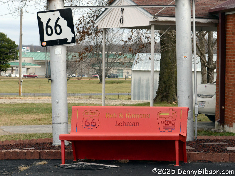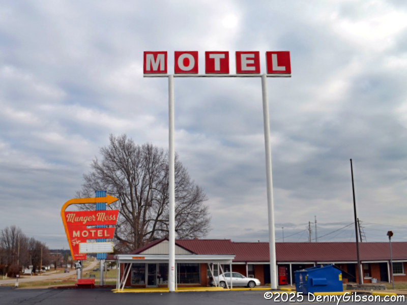 In Lebanon, MO, I paused briefly at the Munger Moss but it seems its days as a much loved working motel are over. At least Bob and Ramona still have their names on a resting spot. Down the street, Glen Wrinkle's name remains on his old store where a BBQ restaurant now operates.